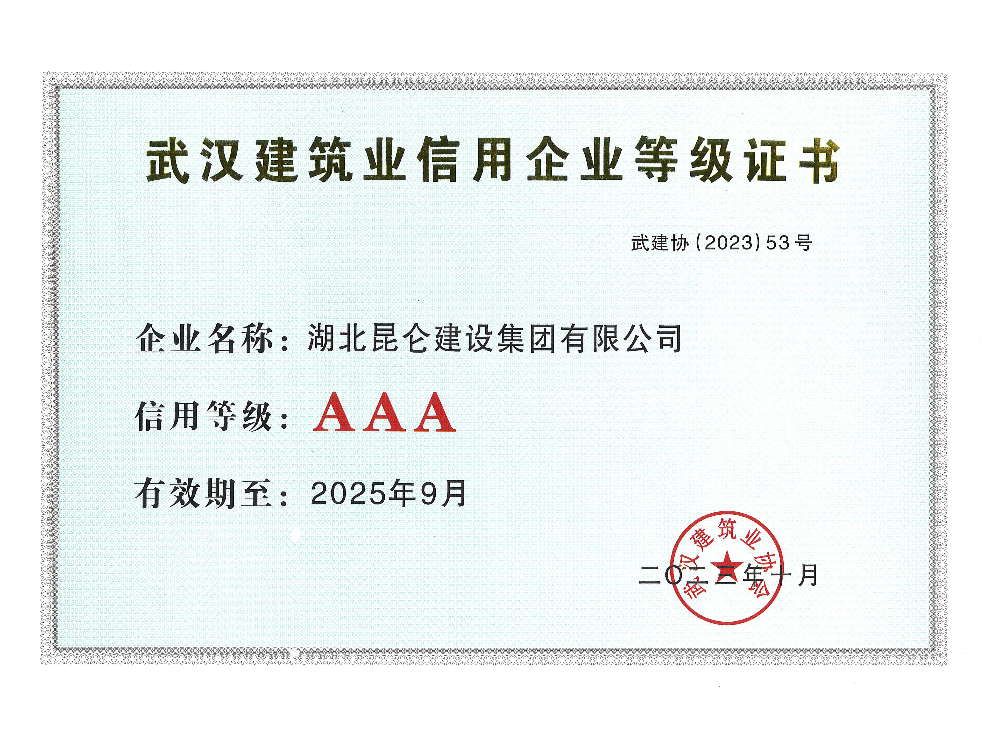 • 2023年武漢市AAA企業等級證書